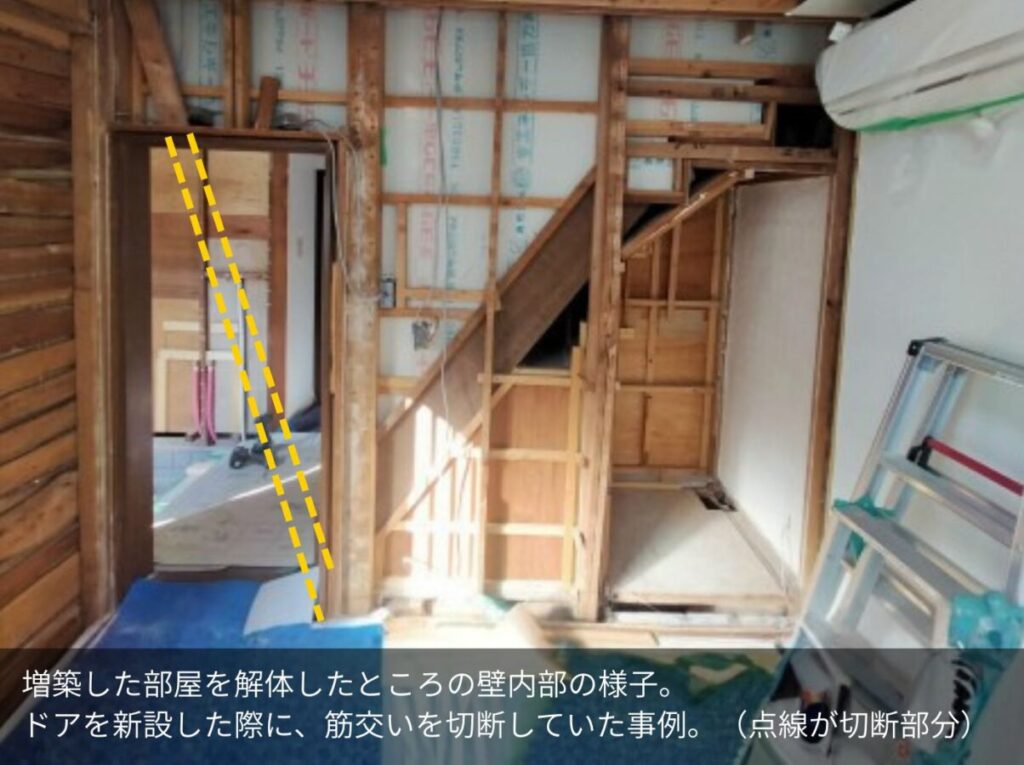 以前はお子さまの成長に合わせて増築するご家庭も多くありましたが、その際に柱や筋交いを傷つけてしまっているケースも見られます。さらに、図面が残っていないことも少なくありません。